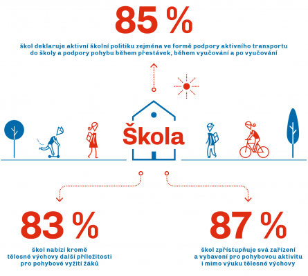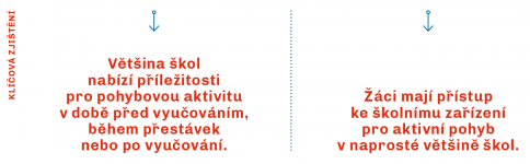 89 % škol aktivně vytváří příležitosti pro pohybové vyžití svých žáků v době před vyučováním, během přestávek anebo po vyučování.