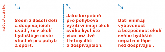 70 % dětí a dospívajících má v okolí svého bydliště místo, kde si mohou hrát, a považuje okolí bydliště za bezpečné pro pohyb a sport.