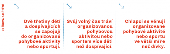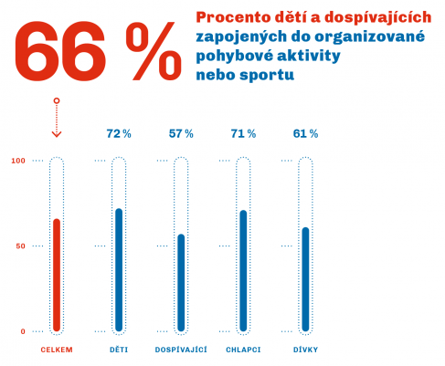 66 % dětí a dospívajících se ve svém volném čase zapojuje do organizované pohybové aktivity nebo sportu.