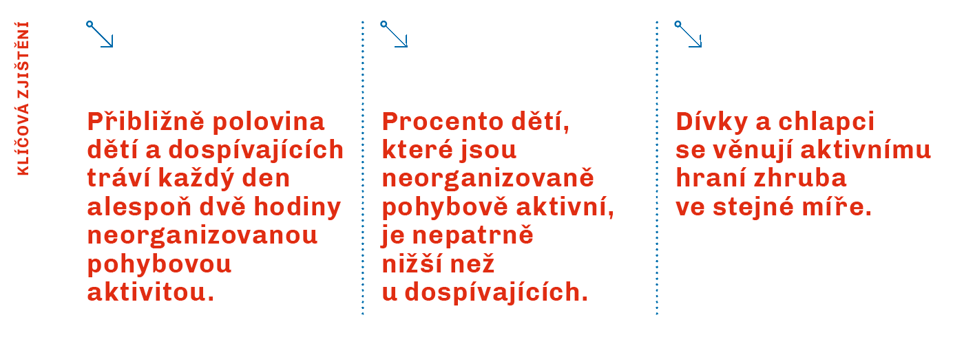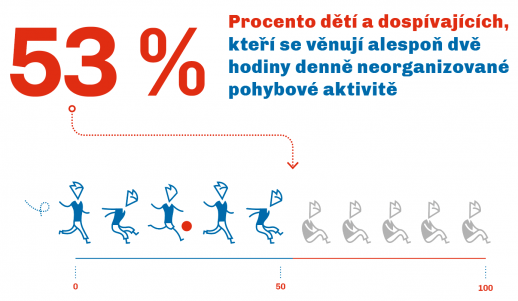53 % dětí a dospívajících se věnuje alespoň dvě hodiny denně neorganizované pohybové aktivitě.