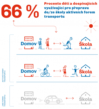66 % dětí a dospívajících využívá aktivních forem transportu pro cestu do školy nebo ze školy.