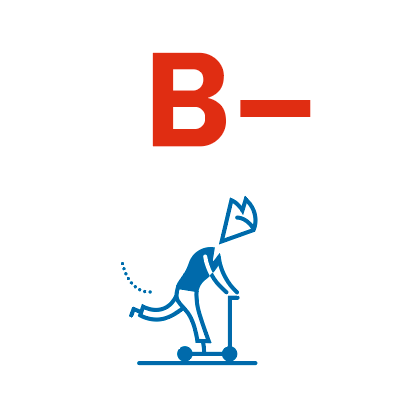 Celková známka byla indikátoru udělena na základě čtyř rozsáhlých průřezových studií využívajících dotazníkových šetření. Jedna z nich doplnila datový soubor o výpovědi rodičů. Z celkového počtu 16 134 zúčastněných žáků se zhruba dva ze tří pravidelně dopravovali do/ze školy pěšky nebo pro svou cestu zvolili jízdu na kole, koloběžce nebo in-line bruslích. Rozdíly z hlediska pohlaví či věkových kategorií byly zcela zanedbatelné. Ve srovnání s výsledky předchozí národní zprávy došlo k navýšení procenta aktivně se dopravujících respondentů o sedm procentních bodů, a tudíž i k mírnému zlepšení celkového hodnocení. Zcela však absentují informace o způsobu přepravy pro dosažení jiných cílů, jako je například hřiště, volnočasový kroužek nebo obchod. Zahrnuté studie zároveň nepracovaly se vzdáleností bydliště respondentů od místa jejich školy. V případě dostupnosti těchto dat by bylo možné spolehlivěji odhadnout potenciál pro navýšení procenta dětí a dospívajících využívajících aktivních forem transportu.