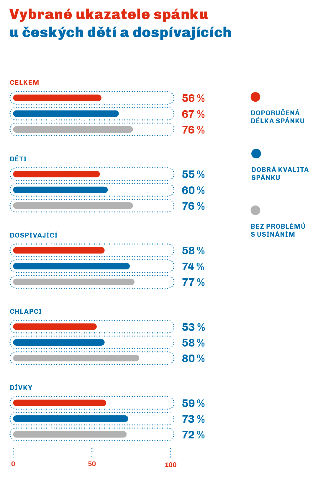 65 % dětí a dospívajících spí dostatečně dlouho a kvalitně a netrpí závažnou poruchou spánku.