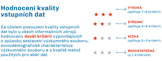 Tým identifikoval 671 potencionálně relevantních zdrojů, které prošly obsahovou analýzou. 28 zdrojů splňovalo stanovená kritéria (tj. přítomnost dat vhodných pro analýzu hodnoticích kritérií, sběr dat byl uskutečněn v období 2018–2019, přítomnost dat pro sledovanou věkovou kategorii).